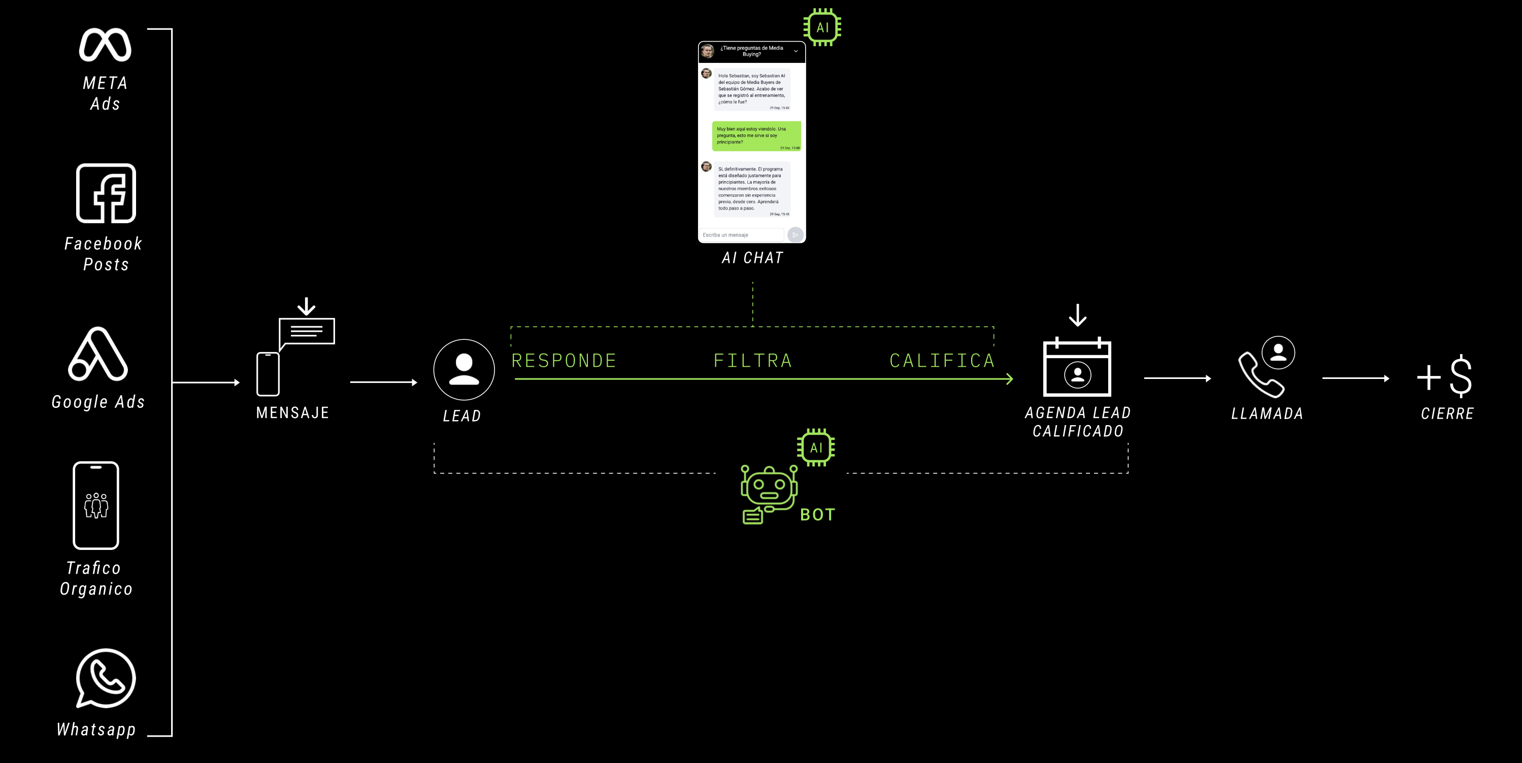 Lo guiamos paso a paso para conectar sus canales, crear sus primeros AI Bots y automatizar su flujo de clientes. Nuestro objetivo es que tenga resultados reales desde el primer mes.