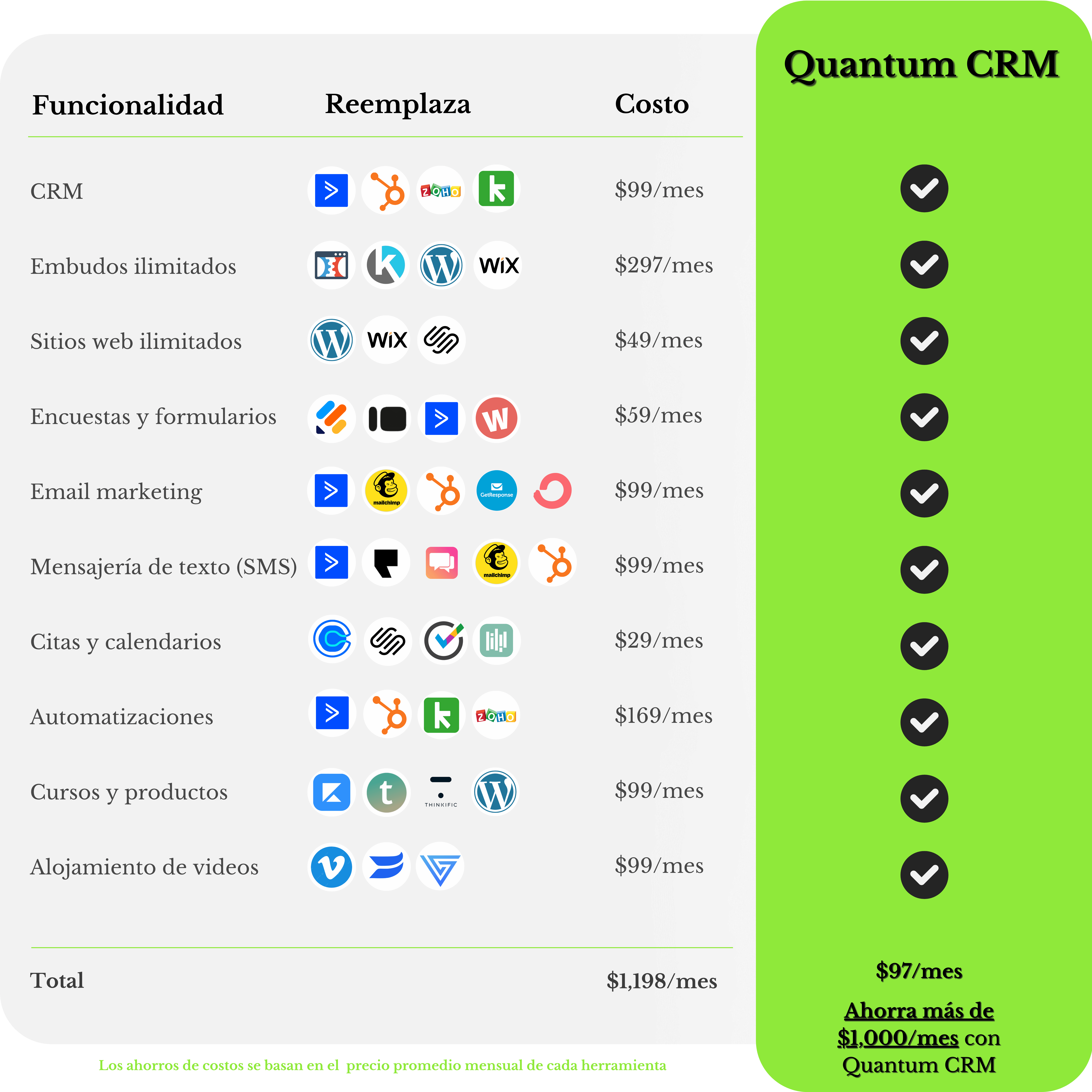 Ahorre hasta $1,000/mes usando Quantum CRM.