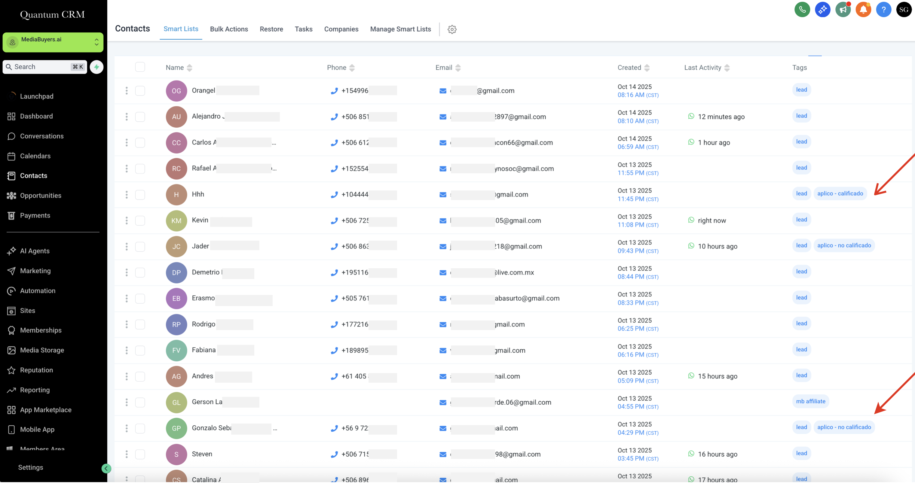 Nuevos leads 24/7 en su cuenta de Quantum CRM pidiendo info por su oferta.