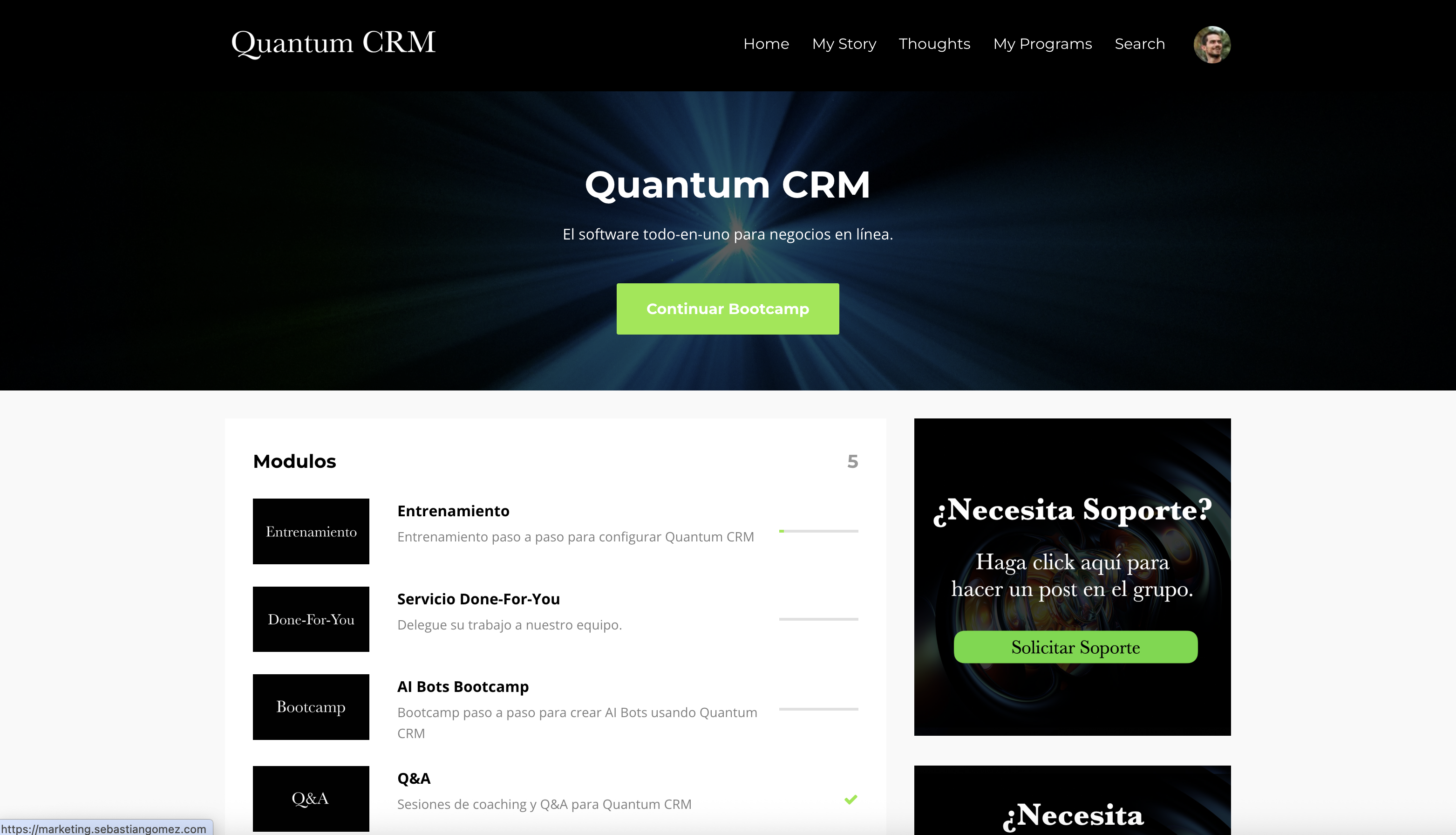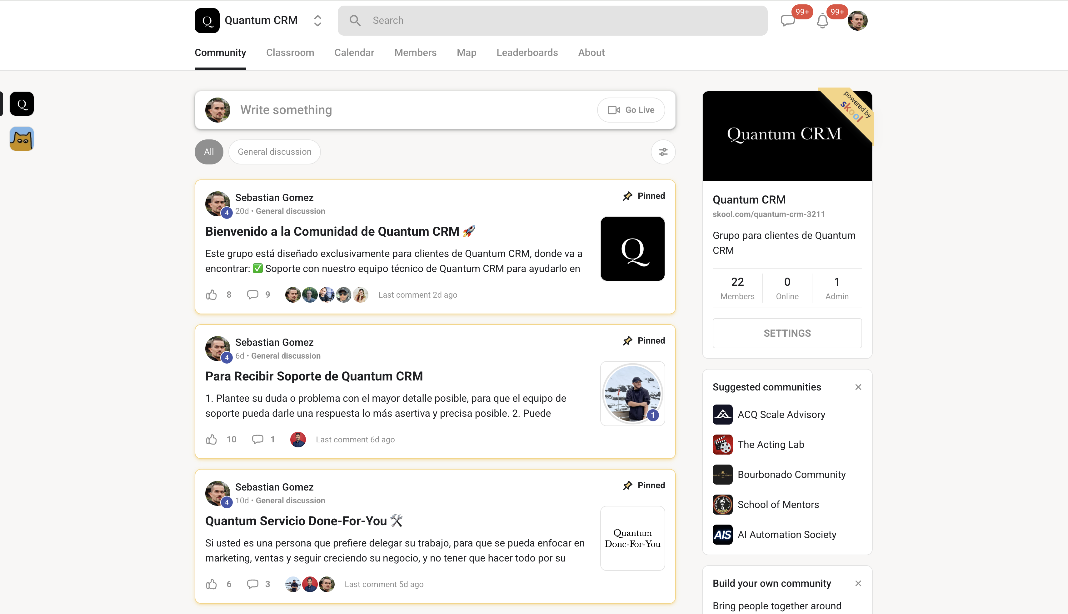 Con Quantum CRM tendrá acceso a una comunidad privada exclusiva, diseñada para que reciba soporte directo, coaching especializado y la oportunidad de hacer networking con otros dueños de negocios que también usan Quantum CRM.
